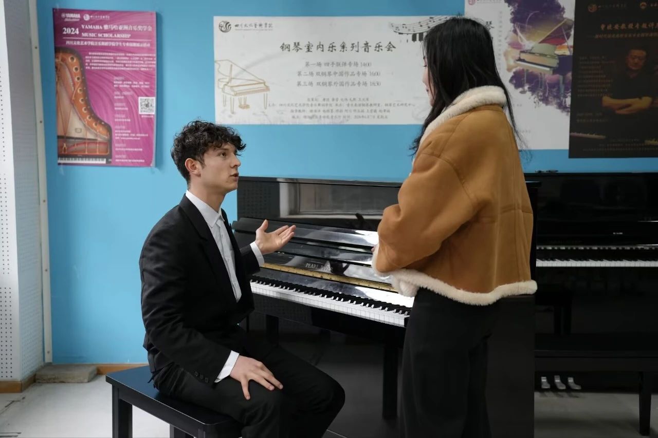 At the music complex on the Mianyang campus, Chinese and Italian students bridged time and space through music. They performed chamber and symphonic pieces, including classics by Chopin and Mendelssohn. Melodious piano notes intertwined with grand orchestral sounds, showcasing the mutual achievements in Sino-Italian music education. During the event, Italian students also engaged in engaged in impromptu exchanges with the conservatory's piano majors, discussing performance techniques and artistic expression.