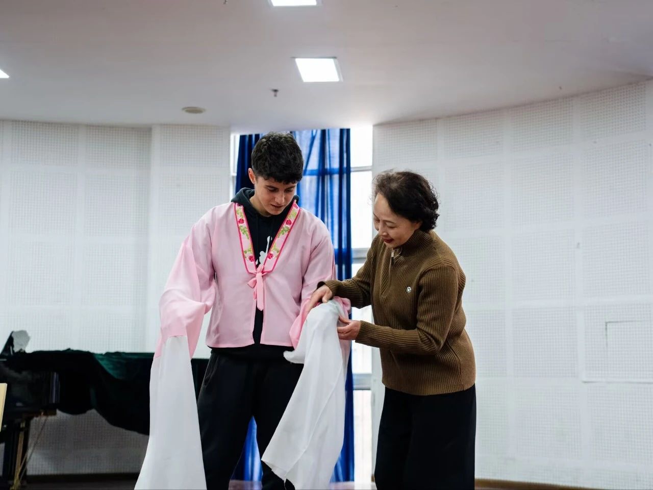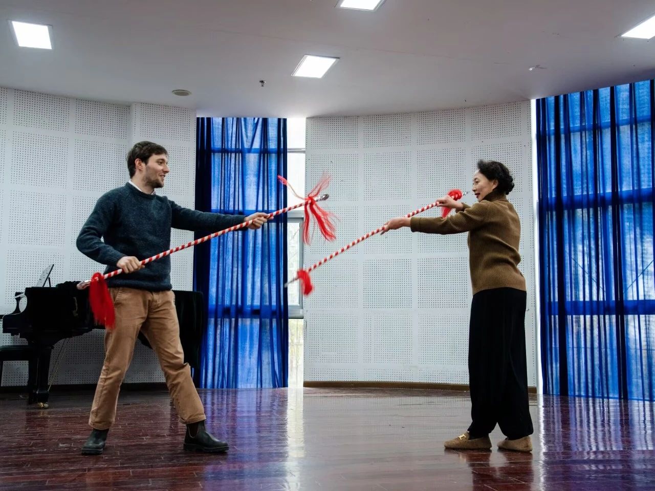 For the first time, Italian students picked up the three-foot long water sleeves and practiced spear techniques under the guidance of a Peking Opera instructor, this immersive cultural experience transcended mere skill instruction. The ritualized performance of Peking Opera was elevated into a perceptible symbol of Eastern aesthetics. After the experience, the Italian students remarked, "This form of embodied cultural transmission is more impactful than any theoretical explanation. I love Peking Opera! I love Chinese culture!"