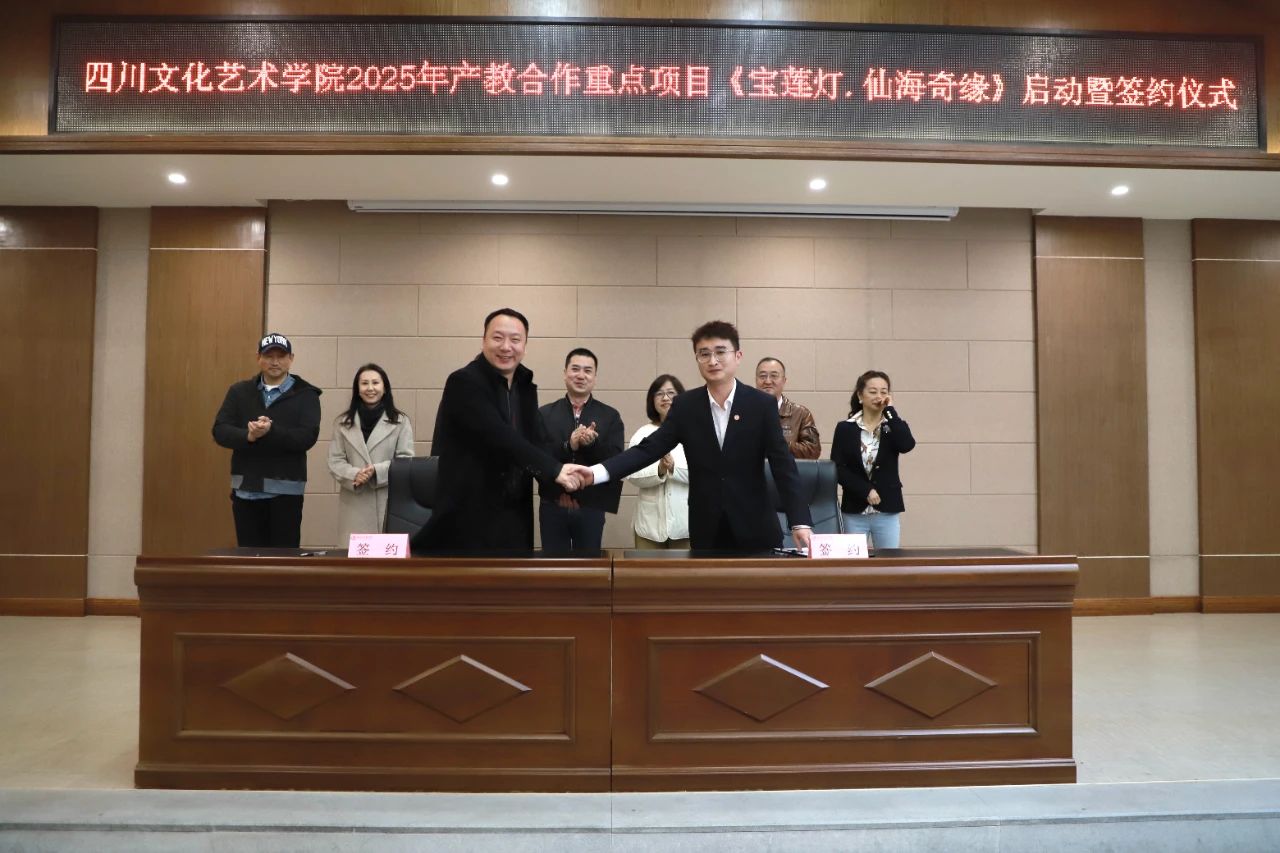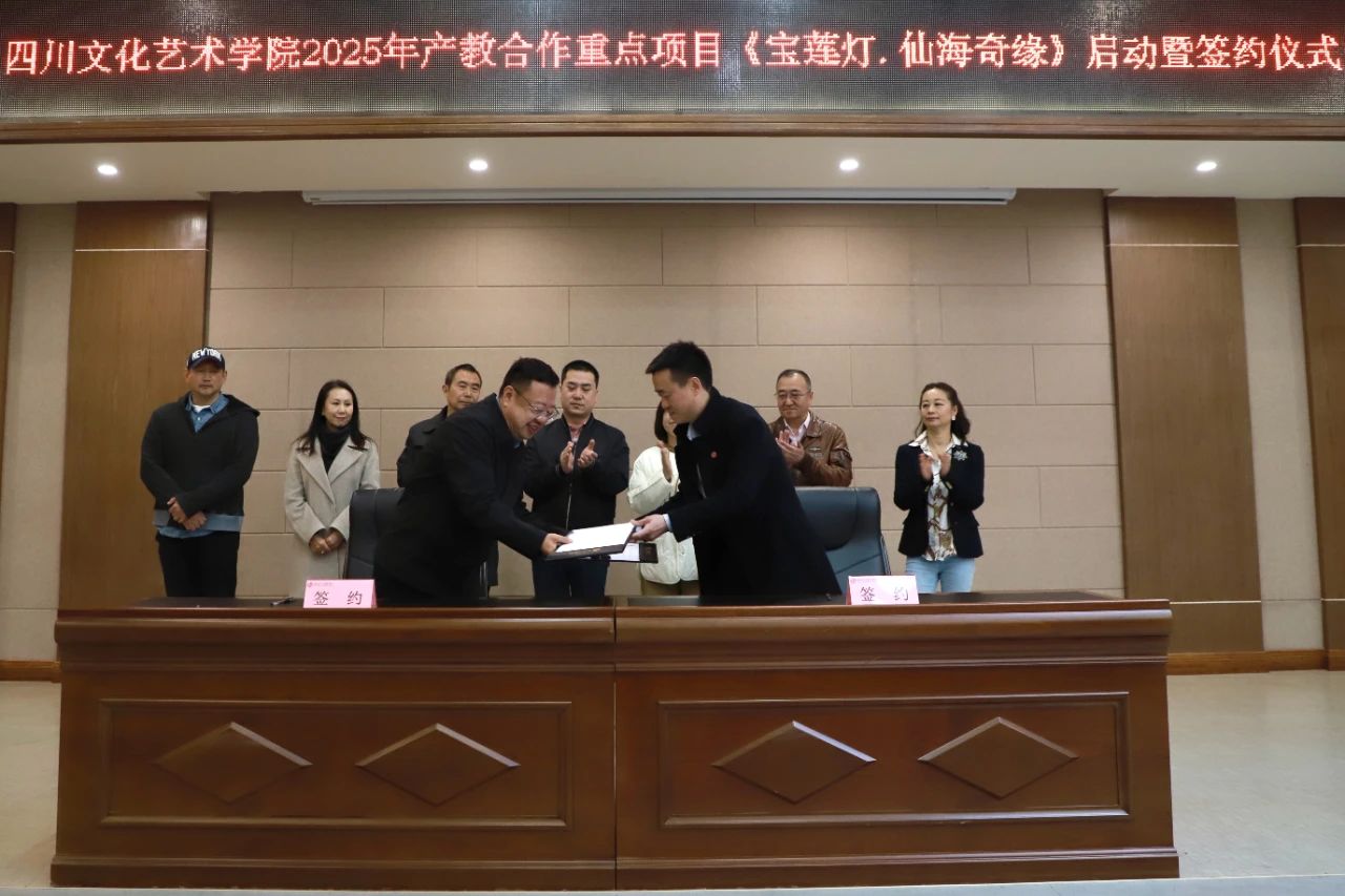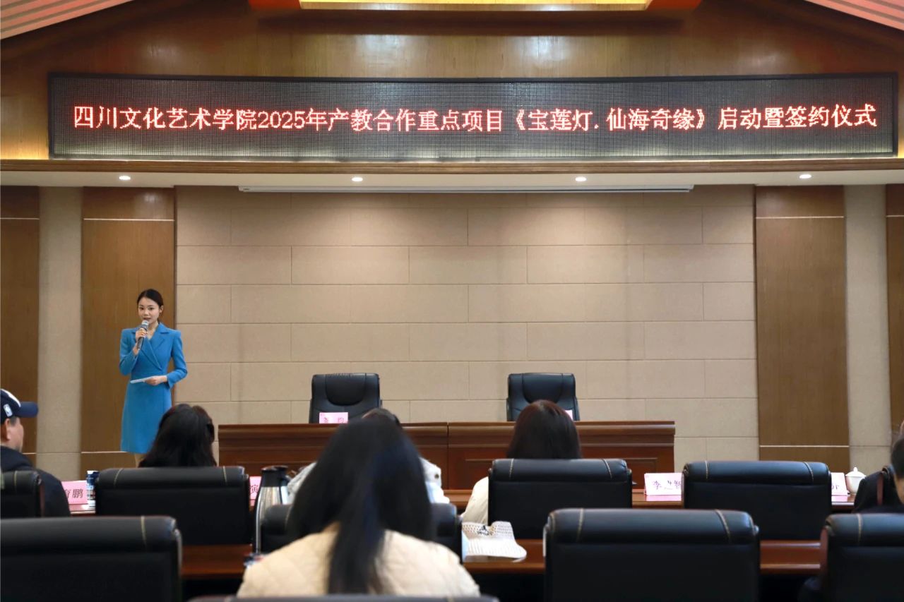 At 10 a.m. on March 14, 2025, Sichuan University of Culture and Arts held the launch and signing ceremony for its 2025 key industry - education integration project, "The Magic Lotus Lamp: Xianhai Quest", at the No. 1 Meeting Room of Wenchang Xuegong in the Zitong campus. Attending the event were Liang Xiumei, Executive President, Wen Xiaoyan, Artistic Director, heads of teaching and research management and industry - education cooperation departments, representatives from cooperation units such as Sichuan Huayi Education Culture Communication Group Co., Ltd., Sichuan Runxing Performance Co., Ltd., Swiss - Chinese Creative Development (Chongqing) Co., Ltd., and Xianhai Tourism Resort, as well as faculty, students, and the project team. This gathering marked a milestone in deepening industry - education integration and boosting the cultural industry.